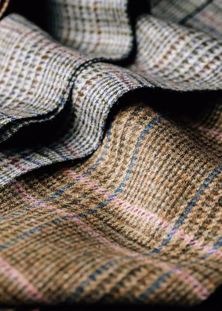 Splitable double cloths return in bold Glen checks and rich plains, offering warmth and structure in earthy, tonal shades. New Shetland tweeds introduce pops of colour and micro-patterns with a distinctly rural feel - balancing tradition with charm. The twist qualities, including fresh additions, offering subtle texture and depth to classic checks and suitings, reinforcing the enduring appeal of the Heritage Twist range.