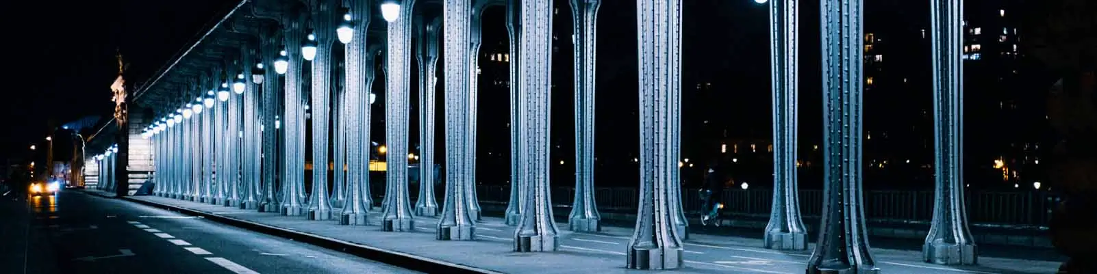 In the enveloping silence of the night, we walk slowly under the glow of street lamps.