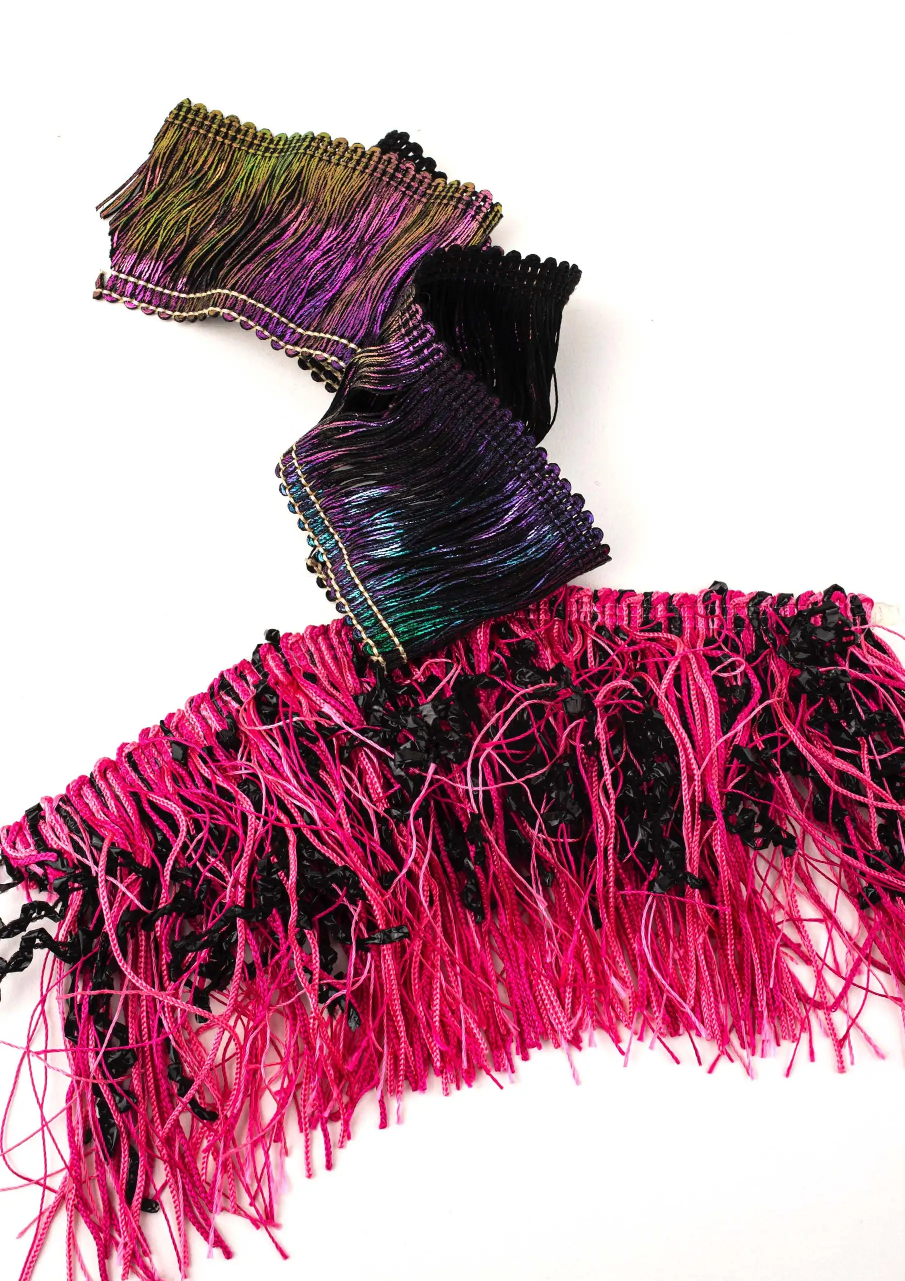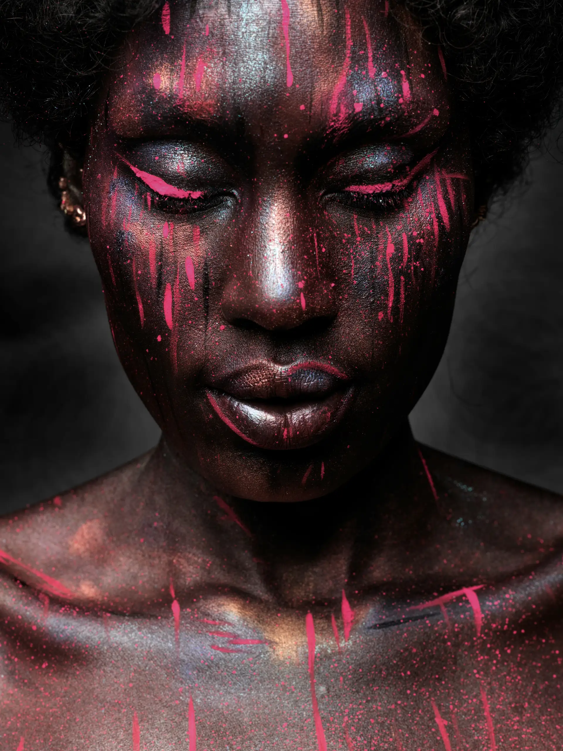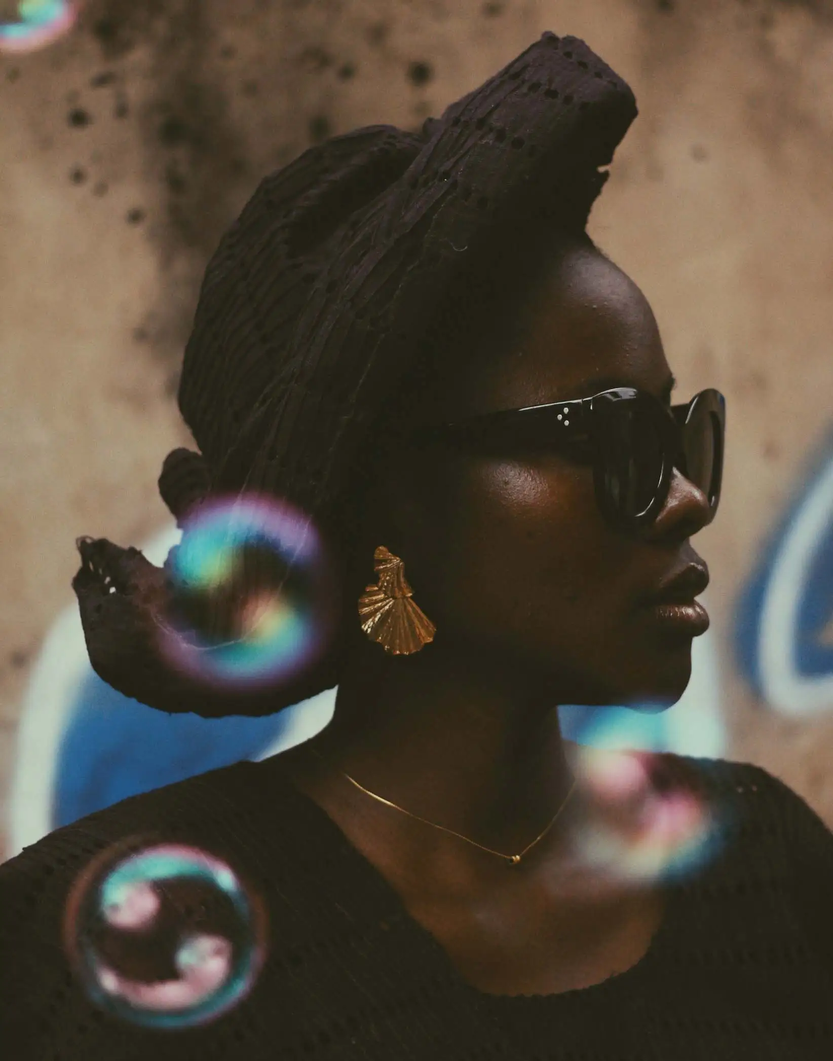 High contrasts and deep tones give shape to a magnetic aesthetic, where light settles on dark skins like a precious reflection, revealing an intense and irresistible allure. From a soft green background emerges a harmonious profile with short hair – a portrait that seems to come to life on the canvases by Tessitura Vignetta. A little further on, the black and gold labels by Indet Group gleam like jewels adorning a smiling face framed by a full, luminous crown of Afro curls. Against a pink backdrop, a girl with long jet-black dreadlocks smiles with effortless elegance, her white skirt igniting the delicate chromatic balance by Tessilidea. The jacquard and knitwear by M.T.T. Manifattura Tessile Toscana evoke a radiant portrait, imbued with an editorial and energetic style. A voluminous braided hairstyle completes the look of a yellow top patterned with blue flowers, standing out against a vivid red background – a vivid echo of the jacquards by Dutel Création. Elsewhere, lilac and brown meet in the lace by Pasqua Style, creating a refined play of contrasts around a face framed by enchanting green eyes. By the sea, another face stands out against the horizon: black braids and the turquoise of the landscape merge in the sophisticated harmony of accessories by Tarducci Massimo. The rhinestones by GSM Crystal scatter like sparks across another editorial image, where a violet hairstyle enhances golden and green make-up. Close by, bold eyeliner and strokes of vibrant fuchsia evoke the daring creativity of accessories by Passamaneria Frassinetti. Finally, the golden and bronze buttons by CK Creativ Knopf complete the composition – a portrait suspended between elegance and streetwear, where every detail reflects the same irresistible, magnetic beauty.