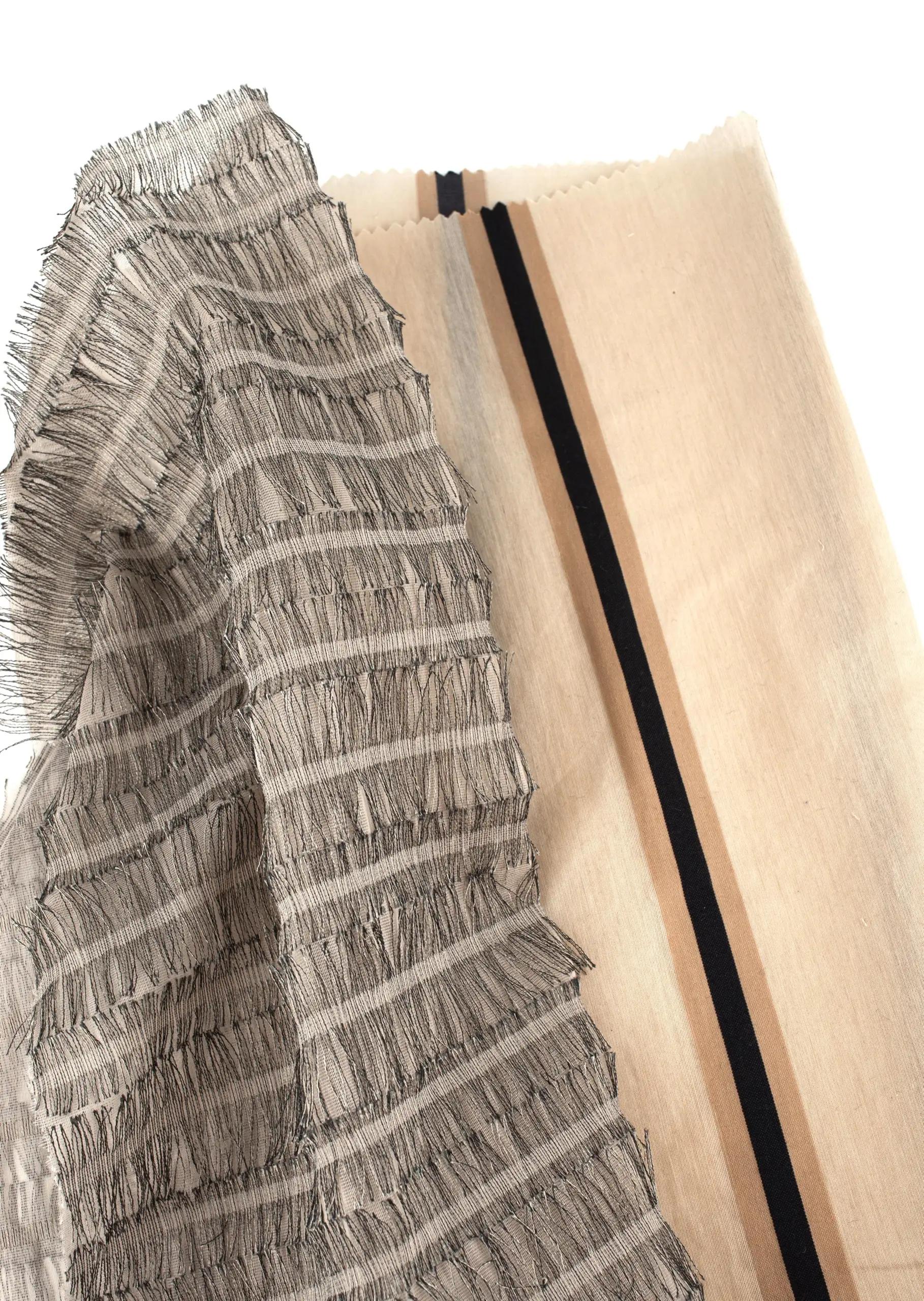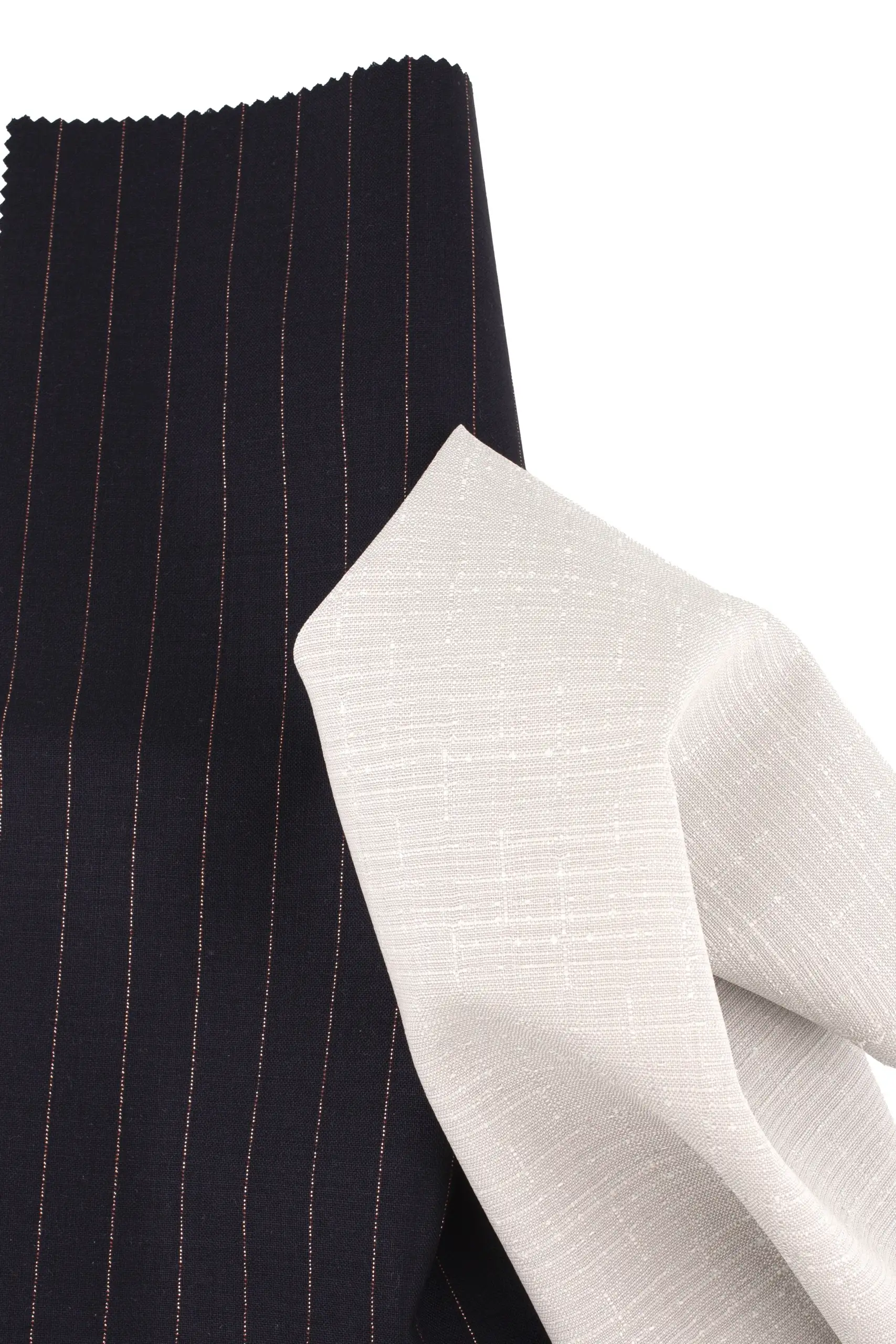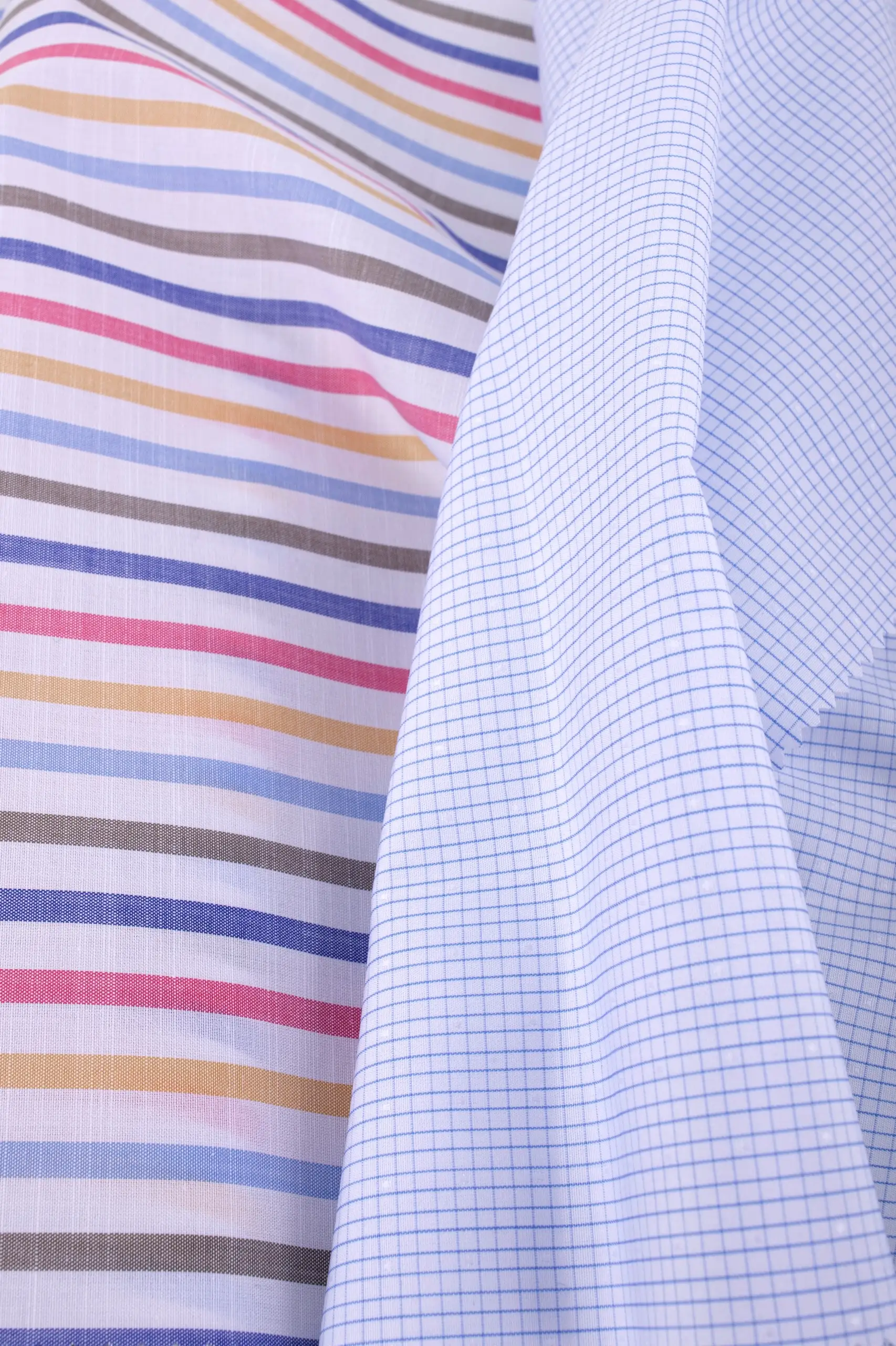 In the vibrant heart of the city, where the rush of life intertwines with the harmony of form, architecture becomes a language: rigour and beauty merge into the dizzying geometries of skyscrapers. Three majestic buildings rise high, their white walls traced with coloured lines like the pure cottons by Alumo / Brennet / Eugster & Huber, while the textures by Piave Maitex seem to give shape to a three-dimensional façade that draws the gaze and guides it towards the windows. Further ahead, two twin skyscrapers stand out against the sky, their countless windows creating a play of squares reminiscent of the patterns by Tessitura Grandi & Rubinelli – Hausammann + Moos 1811. The white and orange of Blitz Star zips are reflected in the lively façade of a colourful building. Beneath a bright spring sky, the light caresses the white façades, which cast beige and brown gleams over the cotton and TencelTM Lyocell by TMG Textiles. The dark glass and copper lights of a futuristic skyline are mirrored on the virgin wool by Lanificio di Tollegno, while a pastel blue façade with white shutters vibrates with the same hues that enliven the Borgini Jersey fabrics. The stripes and jacquards by Prina Tessuti intertwine like an architecture suspended between memory and modernity, between nostalgia and vision, framed by dark glass and soft beige walls. In the city’s most modern quarter, buildings in deep tones rise beside a white skyscraper, creating the chromatic balance of checks by Lanificio Nova Fides. Finally, as night falls, the delicate fabrics by M.I.T.I. wrap the scene like a light evening mist, turning the city’s skyline into poetry – a sublime feeling, suspended between steel and dream.