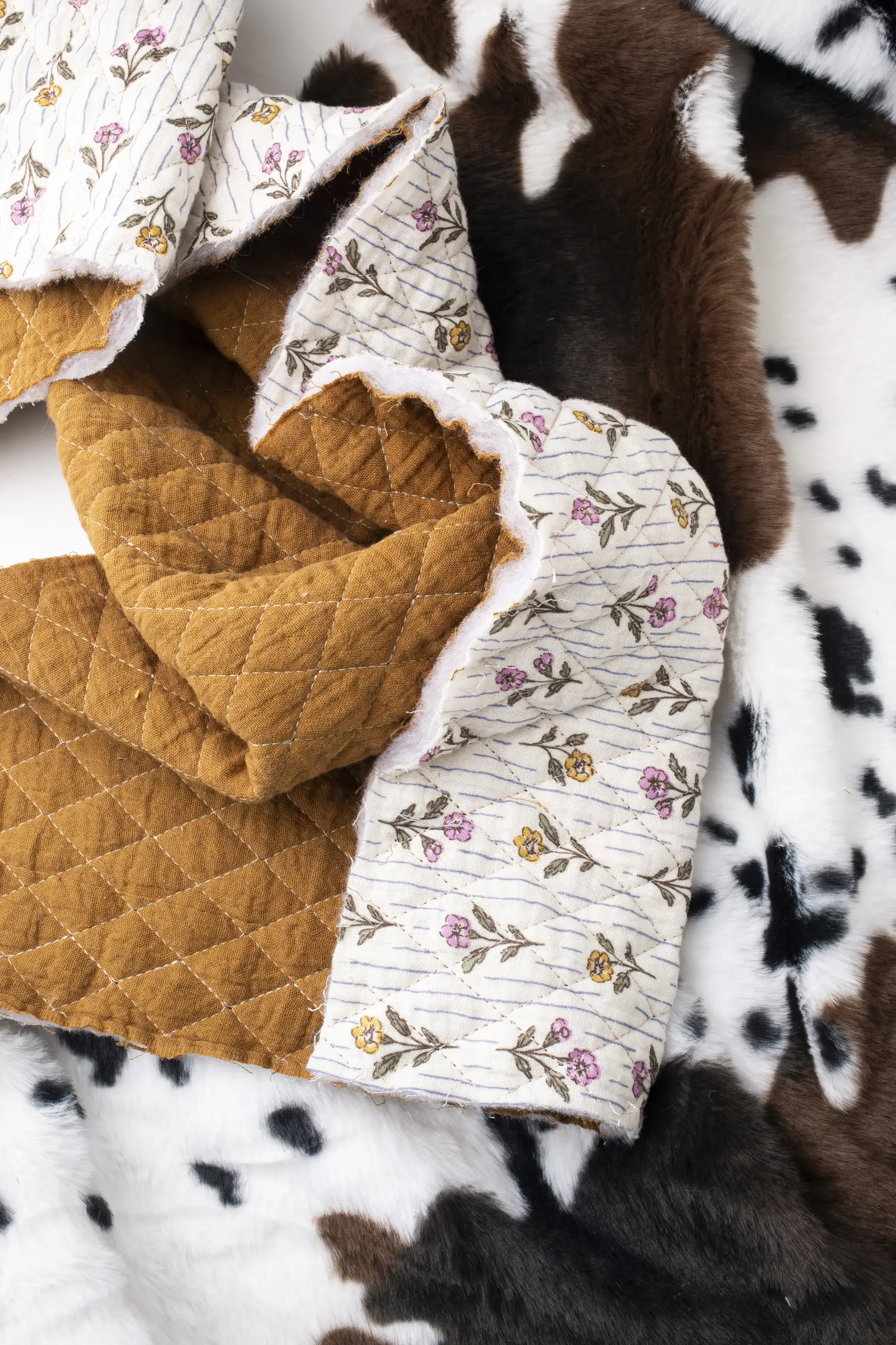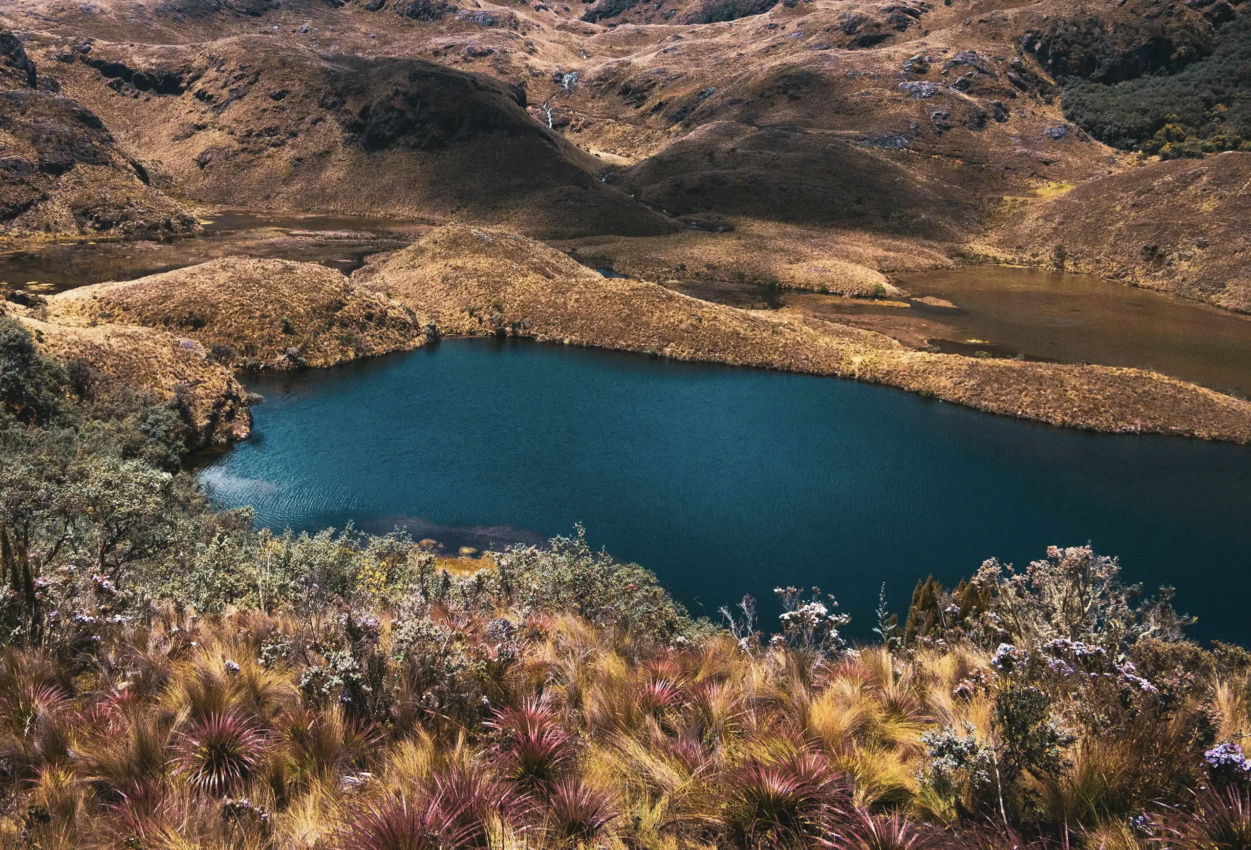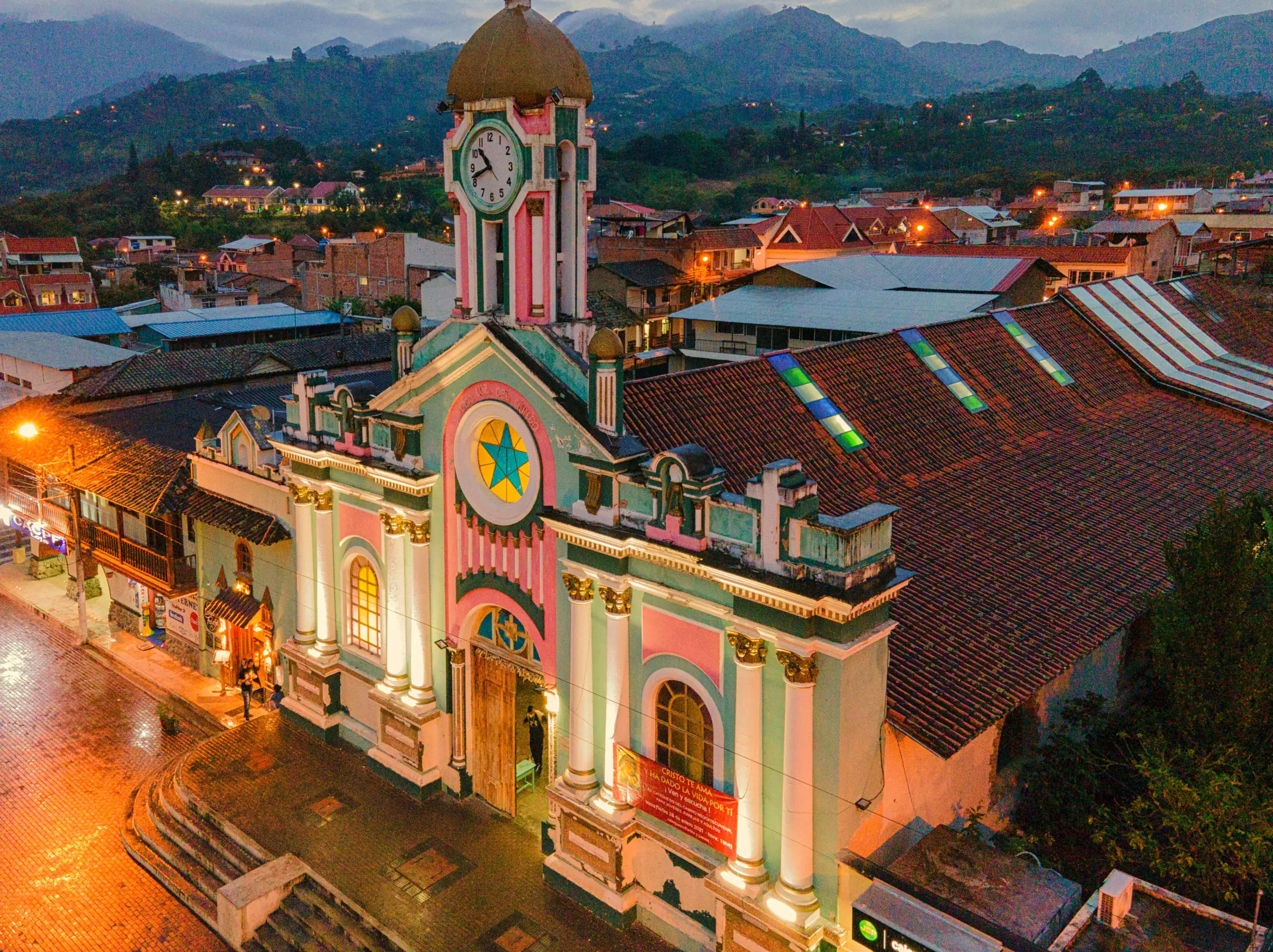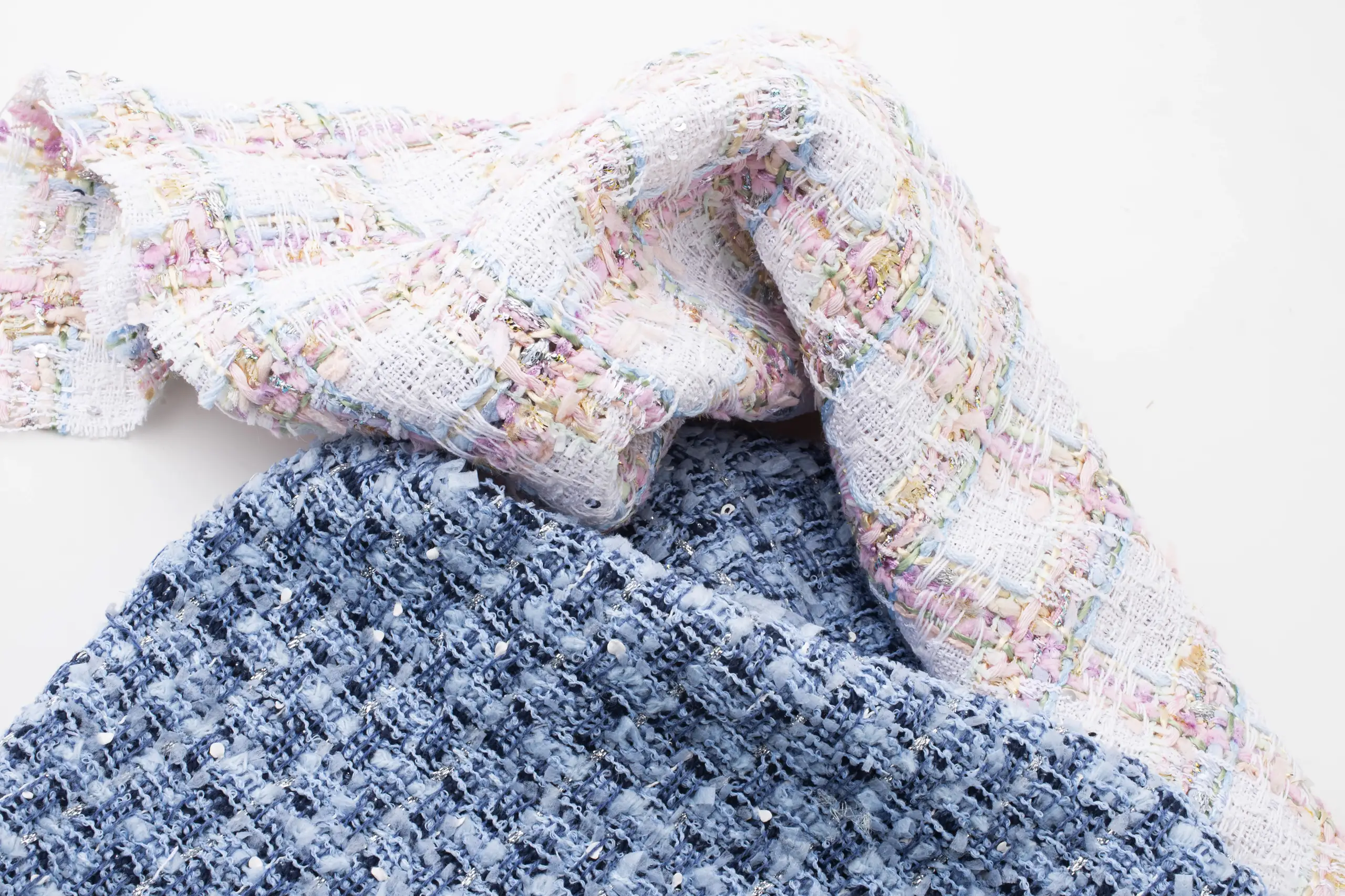 Amid exotic landscapes and overwhelming colour palettes, we fly towards a land suspended on the Equator, inhabited by enchanting nature and astonishing animals: Ecuador. The first stop leads to the Cathedral of the Immaculate Conception in Cuenca, emerging among the branches like an unexpected vision, much like the yellow-ochre canvas by Texmoda that surfaces beside green and beige tweed. Not far away, in Quito’s Parque La Carolina district, the metallic jacquards by Stola align to evoke the shades and slender verticality of the striking Epiq building. High in the Andes, Lake Quilotoa gleams, set within lush vegetation, mirroring the elegant tones and refined patterns by Brunello. Meanwhile, Topp Italia trimmings intertwine like vivid plumage, shaping the intense colours of two magnificent scarlet macaws in their natural habitat. In El Cajas National Park, the path winds through luxuriant greenery, recalling the hues and forms by So.Tex.Co International, while the soft animalier and delicate matelassé by Le Tissu by Domotex convey the calm of a gentle cow grazing peacefully. In Quito, at Plaza del Arte, a vibrant mural engages in dialogue with the geometric and floral prints by Joker’s; a little further on, Mabo buttons reflect the joyful tones of the church of Vilcabamba. As the sun sets, Chimborazo volcano and the Ecuadorian skyline are wrapped in pink-tinged clouds, a soft echo of the splendid tweeds by Jules Tournier. Finally, as darkness begins to fall, Deveaux jacquards and tartans merge, giving shape to the primordial wonder of the land of the Equator, amid intensely coloured skies and flora of sublime beauty.