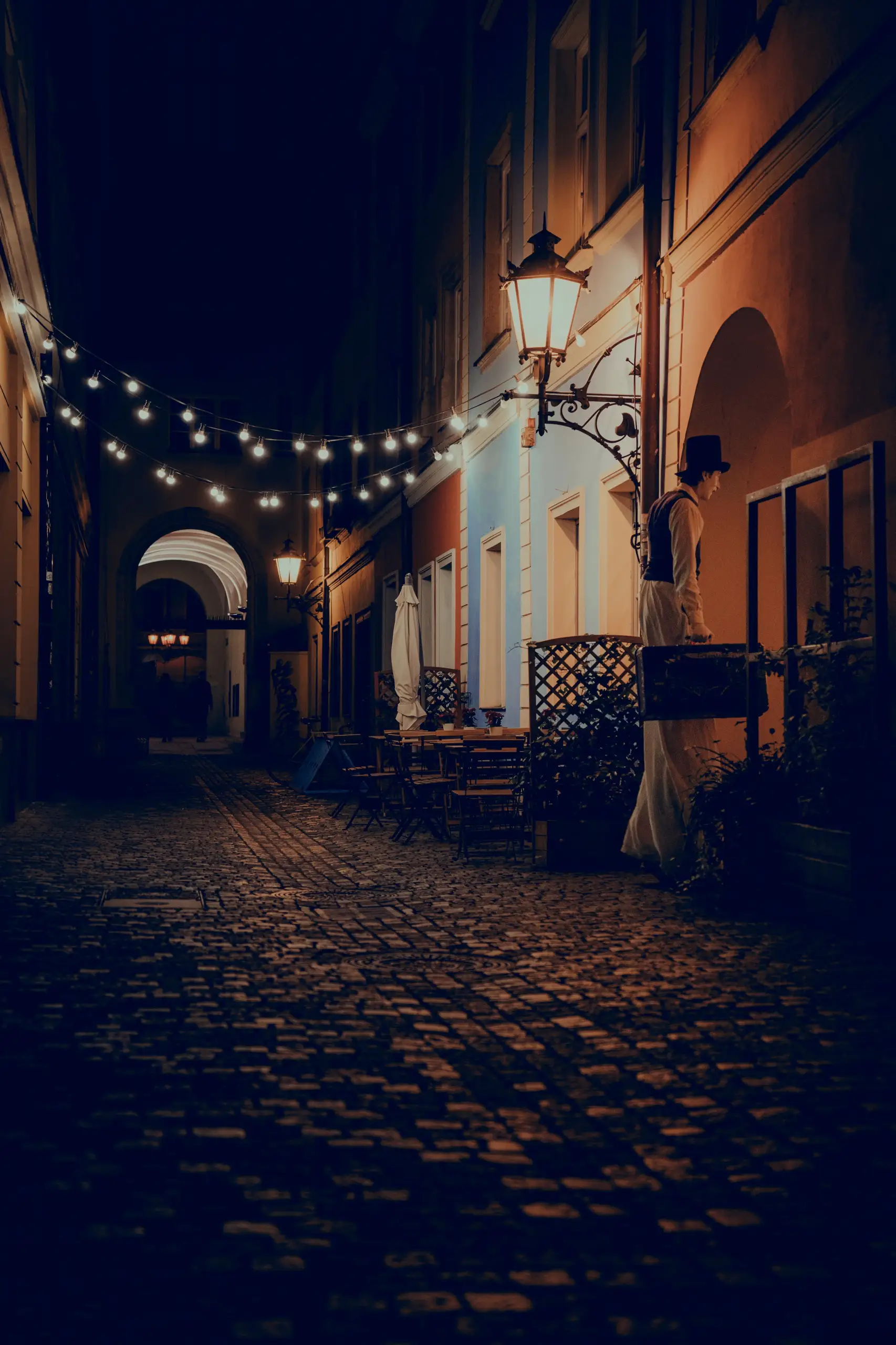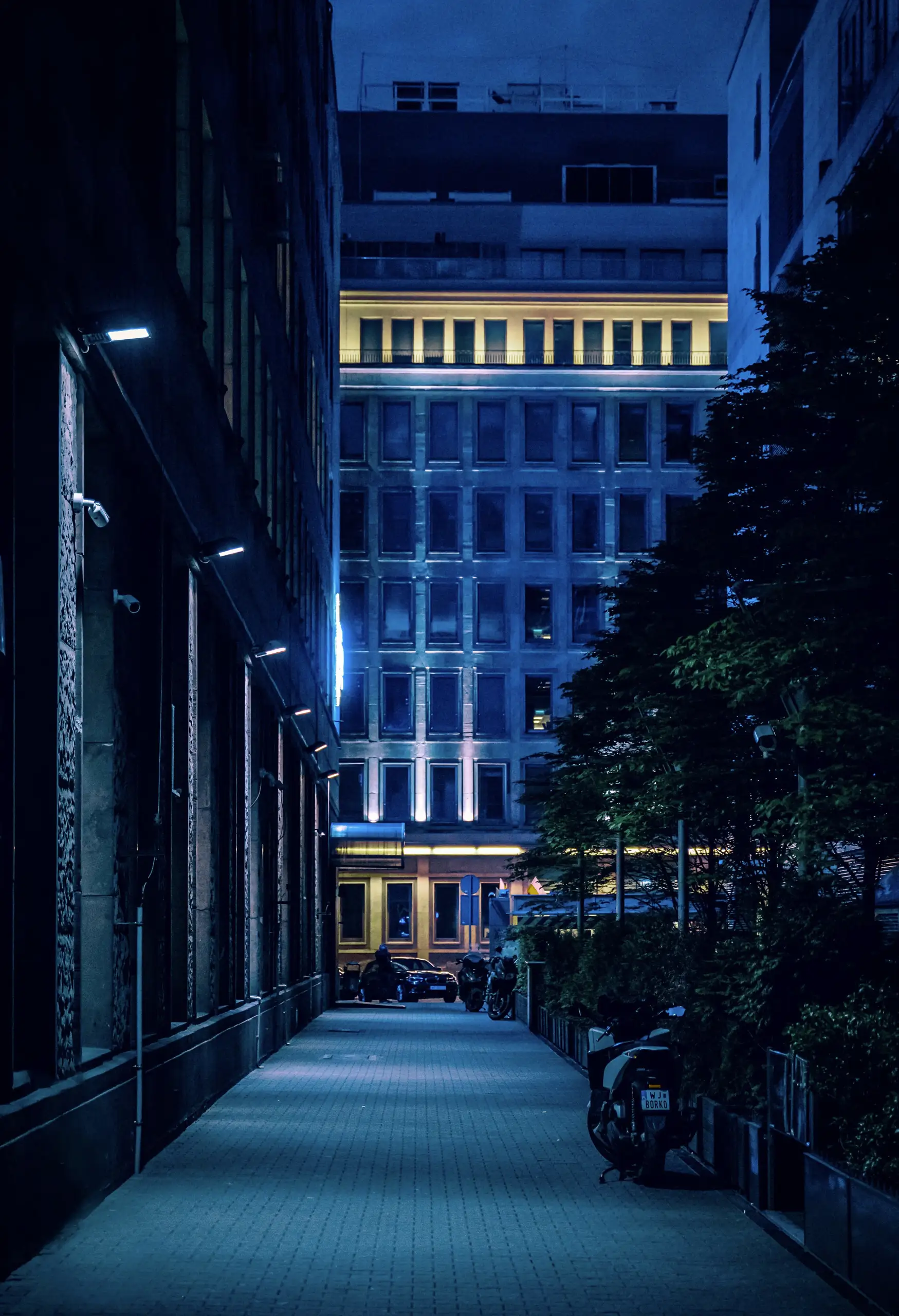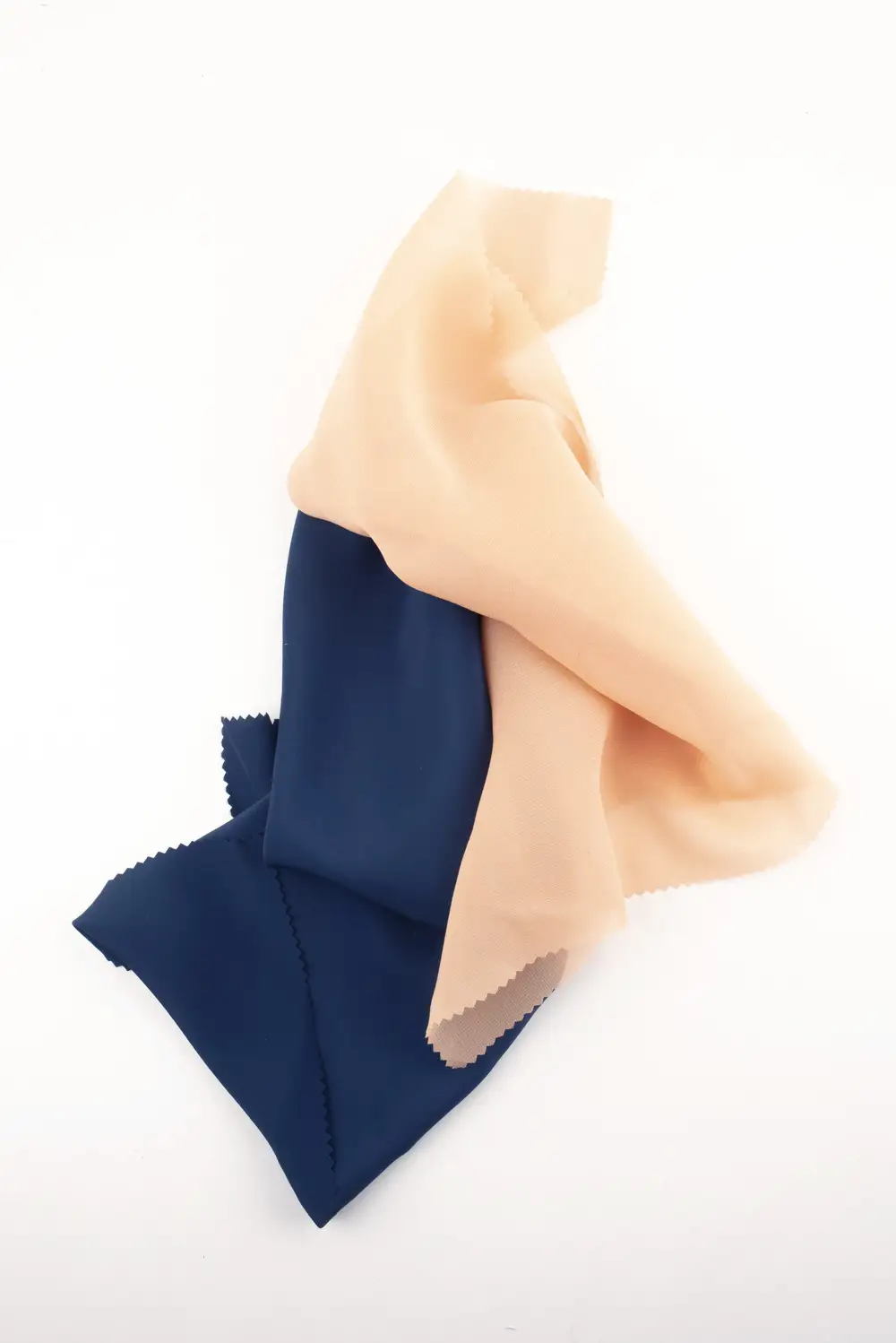 In the enveloping silence of the night, we allow ourselves to be guided by the glow of street lamps, walking slowly through alleys and streets that seem to breathe. The cobblestones beneath our steps reflect the colours of the silks by Nimue – Compagnia della Lana, while the striped fabrics by Manifattura del Prato stand out like a building half white and half blue, quiet and solemn. The street opens up before us, lined with pale-toned buildings, soft as the cotton and silk by Lanificio Becagli. As we reach the heart of the city, the silence breaks: bars come alive with voices and laughter, and the jerseys by Lurdes Sampaio take on the hues of arched walls, telling ancient stories of urban life. In a modern district, street lamps bathe the road in an almost blue light, and iron poles recall the geometries of Fenili accessories. The georgette and crêpe de chine by Manifattura Pezzetti glow in shades of orange and blue, capturing the delicate chiaroscuro of a street where the tables of a now-closed restaurant continue to adorn the outdoor seating area. At last, we arrive in a square surrounded by arcades whose rosy columns break through the darkness, like the cottons by CM Tessuti. Then, the bright yellow by Dinamo Contemporary Fabrics cuts through the deep blue, reflecting the colours of a façade lit from the top floor of a building. On the way back, we notice the street lamps’ light brushing the leaves of the trees, creating natural frames that embellish the buildings, recalling the prints by Next. In the final stillness of the night, the white and beige by Olimpias Fabrics settle over the buildings in a silent dialogue: they seem to watch one another, waiting for the street lamps to fade and for the sun to shine once more.