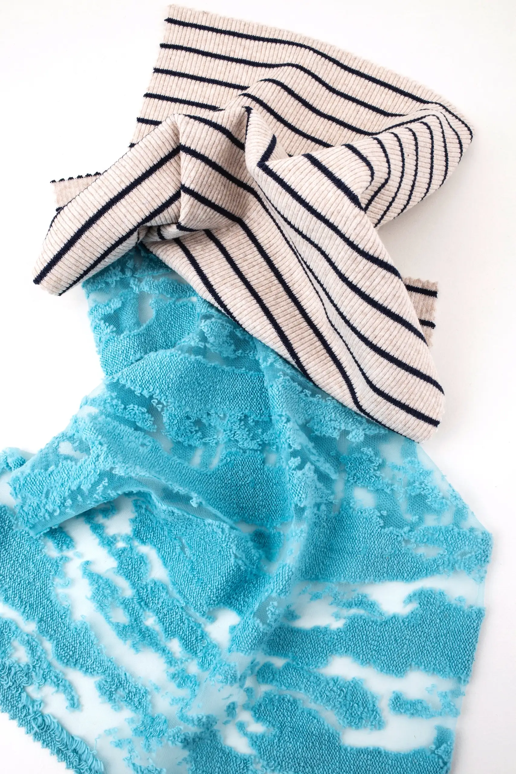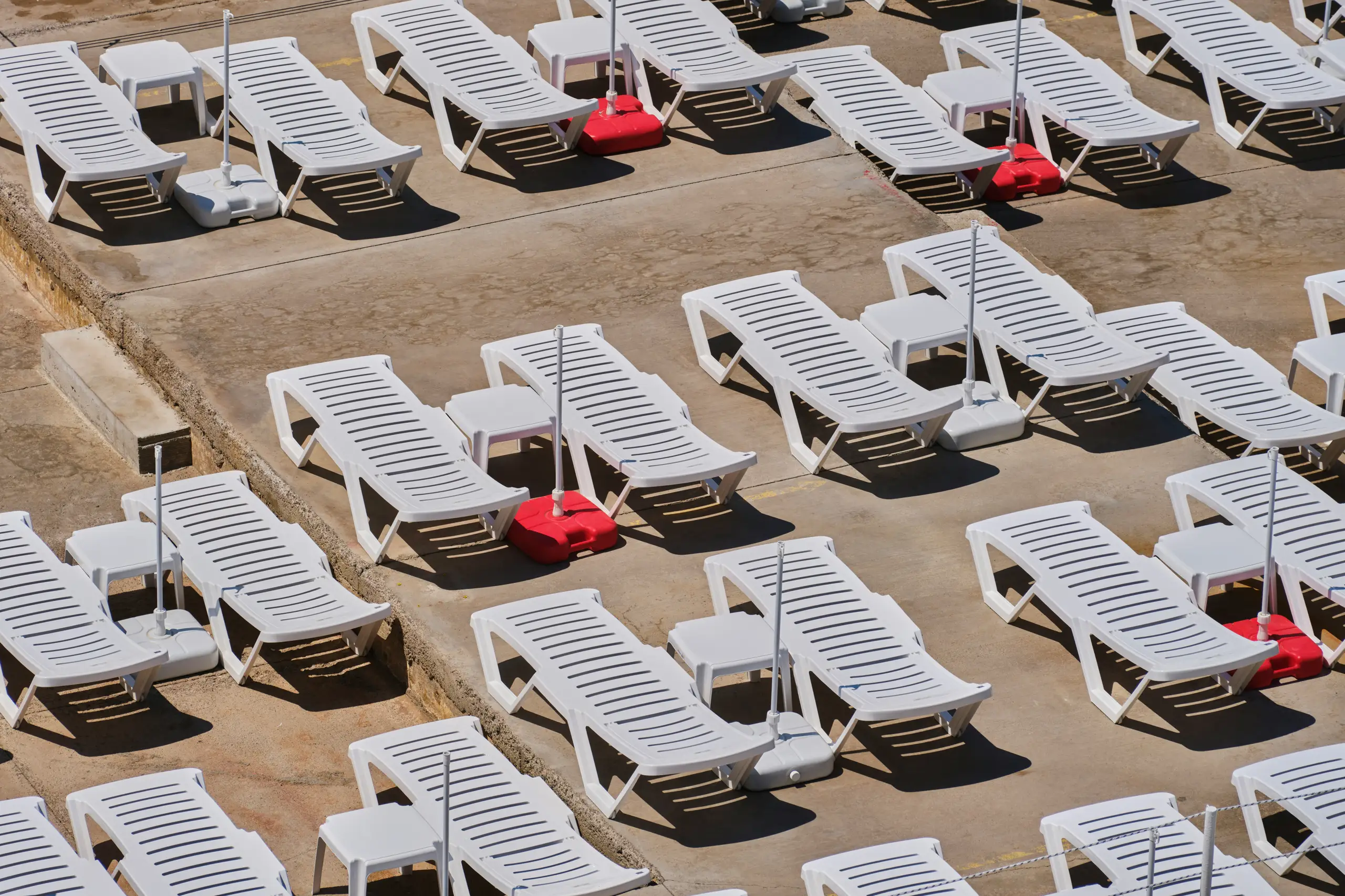 Among parasols, towels and sunbeds, the sea breeze envelops us on a warm day suspended between sun and sand. The morning light caresses the neat rows of umbrellas and deckchairs, creating a harmonious play of colours that recalls the luminous canvases by Tessuti di Sondrio – Marzotto Group, while the vivid red by Jozwiak meets the white on a still-deserted beach, where the geometries of the loungers alternate with the bases of the parasols. Further along, straw umbrellas establish a natural dialogue with the golden sand, tinting the linen and cotton textures by Sidogras. All around, the satin and twill by Balli Il Lanificio catch the light like a sparkling wave along the crowded shoreline at the height of the day. From above, the bathers turn into tiny touches of colour, like the accessories by Zanchi Giovanni scattered across a vast canvas of sand. Beyond, the blue stripes and sheer jacquard by Maglificio Alto Milanese reflect a landscape where an artificial palm decorates the expanse of parasols. Another aerial view, and the sea opens before us: its vibrant turquoise laps the shore and merges with the voile by Mitwill Textiles, while the pale blue and beige viscoses by Giotex F.lli Giorgetti redraw a panorama of light sand and crystal-clear water. As the day wanes, the beach volleyball court becomes a palette of energy, seemingly inspired by the hand-painted fabrics by Flame. Finally, an aperitif on the beach brings the day to a close: beneath the delicate hues by Quality Textiles, the parasol becomes a haven of light and breeze, and the sun – stubborn as ever – continues to illuminate the sky, as if it never wished to set.