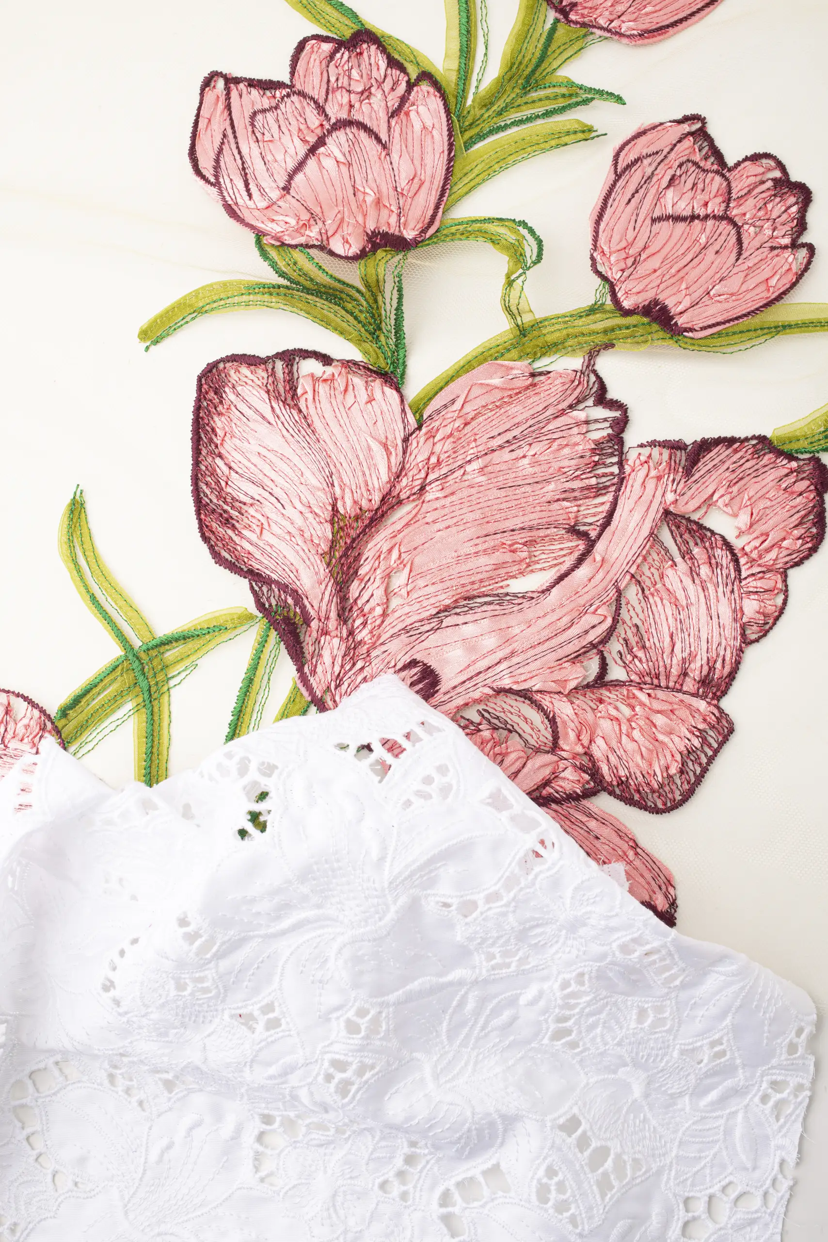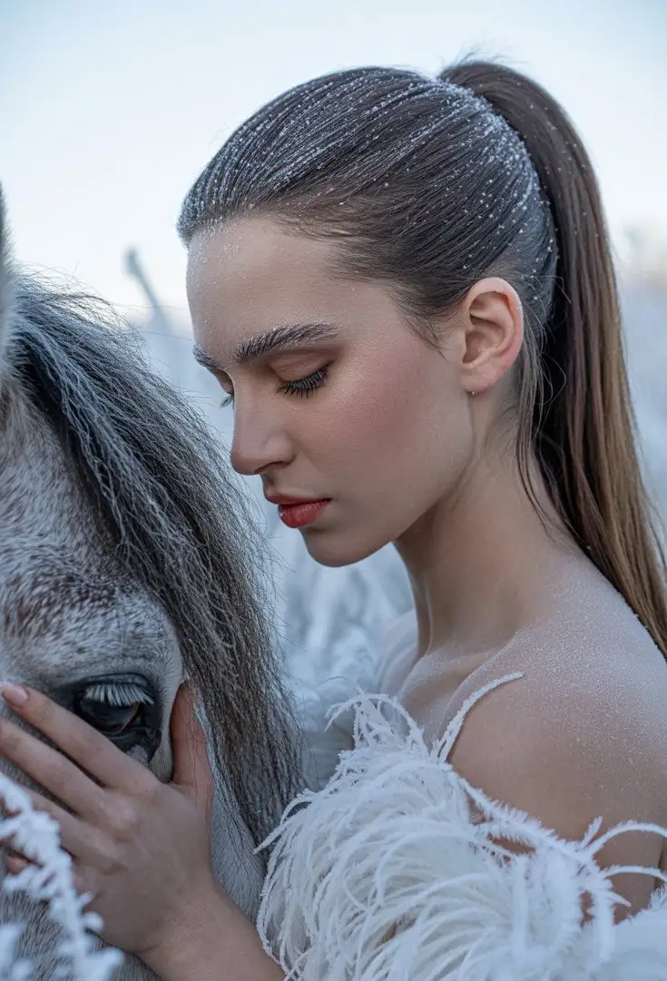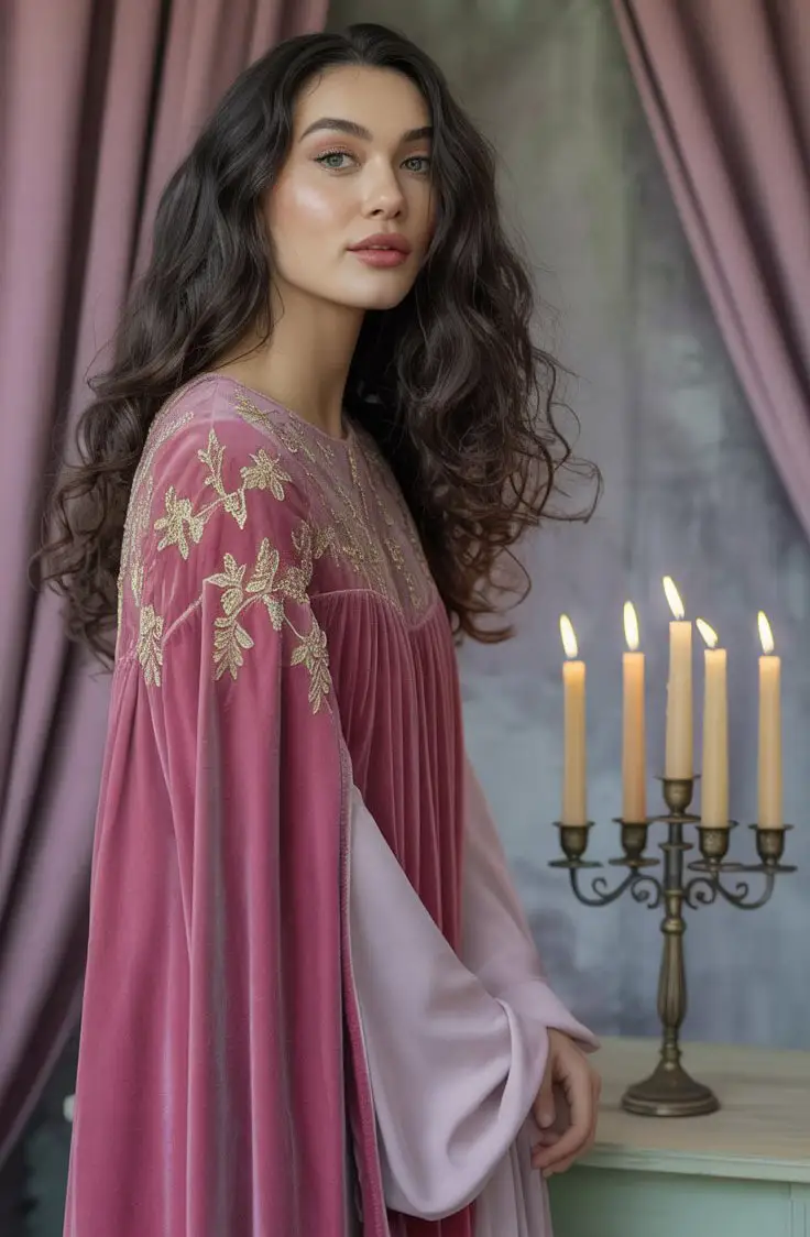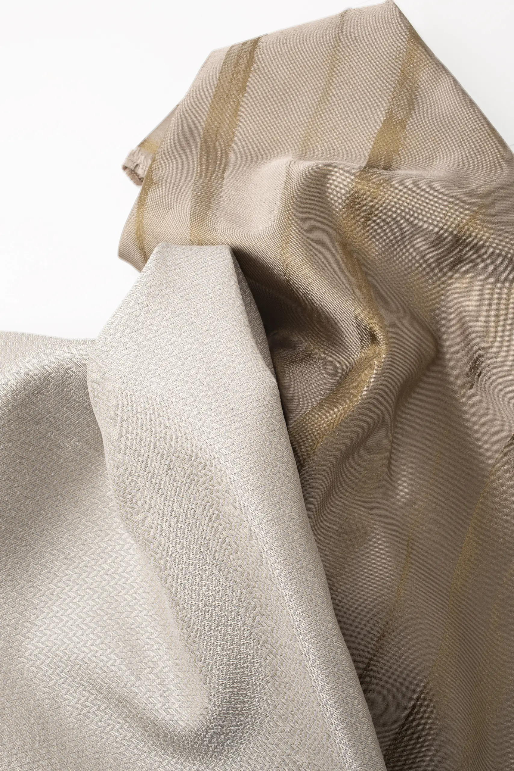 Tra le magie dell’intelligenza artificiale c’è la capacità di dare vita a volti straordinari, figure che fondono la perfezione statuaria con il fascino etereo degli avatar dei videogiochi. Una ragazza, dai lineamenti delicati e luminosi, irradia una luce che si posa sulle tele beige firmate G.D.M. Tessuti, mentre le stampe di Grupo Bordados Oliveira catturano l’essenza di un volto di tre quarti, la cui carnagione sembra splendere di luce propria. Un’altra fanciulla, dall’aspetto tenero e romantico, pare emergere da un sogno, riflessa nelle preziose lavorazioni di Ricamificio Lusi. Le tele di Juan Boluda, invece, si colorano con la grazia di una giovane immaginata davanti a tanti mazzi di fiori rigogliosi. Poi, un ritratto illuminato da riflessi bronzei rivela una bellezza magnetica che vibra sulle eleganti tonalità di Stephen Walters, mentre le passamanerie di Manifattura Modenese richiamano un dolce quadro di una ragazza con il suo cavallo, sospesa tra realtà e immaginazione. Altrove, l’IA evoca un’atmosfera anni ’30: una donna elegante suona il pianoforte, le sue sfumature riflesse nei jersey dorati di Seride, mentre la stampa oro e rosa e il ricamo nero di Airily reinterpretano un’altra bellezza come un ritratto settecentesco sospeso nel tempo. Infine, un volto appare accanto a un prodotto, in un chiaro rimando alle pubblicità di cosmesi: le sete Tiarè catturano la freschezza acqua e sapone della modella, mentre le delicate decorazioni floreali di Eusebio Sanchez suggellano la grazia assoluta di un ritratto scattato in uno splendido giardino botanico immaginario che solo l’intelligenza artificiale può creare.