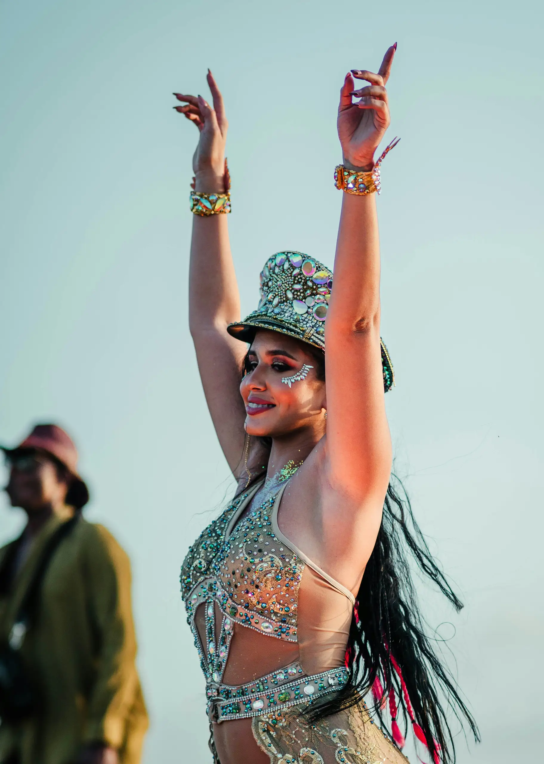 Come ogni primavera, il Coachella si accende di libertà e creatività, aprendo le sue porte a visioni stilistiche audaci e a stravaganze glamour che danzano a ritmo di musica. Sotto i raggi tiepidi del sole del deserto, una ballerina si muove leggera, incarnando forme e cromie delle etichette firmate Fec*Serilabel di Facchinetti, mentre gli accessori NRGY – Staff Ricami – Manifattura Carpigiana raccontano la spensieratezza di un gruppo di amiche, tra risate e passi improvvisati. Un’altra danzatrice cattura lo sguardo con un abito cosparso di strass, un richiamo scintillante alle preziose lavorazioni di GSM Crystal. Intorno, fibbie e bottoni firmati Gritti 1924 sembrano sospesi come acchiappasogni, evocando uno spirito boho chic che si riflette nei tatuaggi delicati di una ragazza in canottiera bianca, pura e luminosa come le etichette di Graf & Co. Il bianco, l’azzurro e il lilla dei bottoni Deb si fondono in un’esplosione di colore, specchio di un outfit dal sapore rétro, fermo in una posa senza tempo. Quando il volume sale e la folla si abbandona al ballo, emergono figure vestite di canotte a rete, leggere ed eleganti come le tele Free Time. I jersey bianco e oro di Maglificio Alto Milanese si intrecciano invece in un’acconciatura bohémien, impreziosita da piume che sembrano ondeggiare a tempo con la musica. Davanti a un paesaggio roccioso, una ragazza siede su una staccionata con il capo coronato da un cappello di paglia: un’eco naturale delle cromie e delle matericità delle zip di Zip Goffredo | ZIP GFD. E quando cala la sera, le sfumature iridescenti di Cucchetti Tessuti incontrano il nero brillante della notte, riflettendo la magia elettrica delle ore più intense del Coachella, tra luci LED pulsanti e musica che vibra nell’aria.