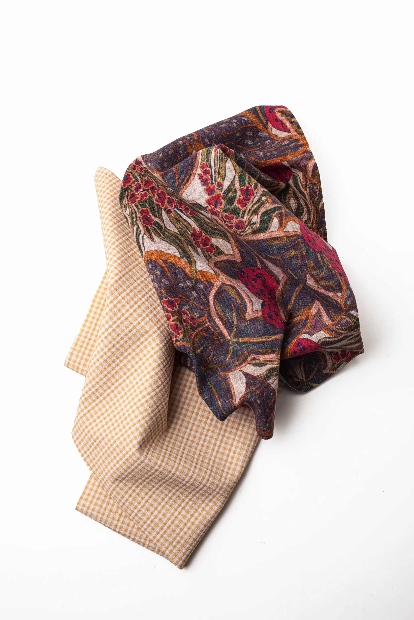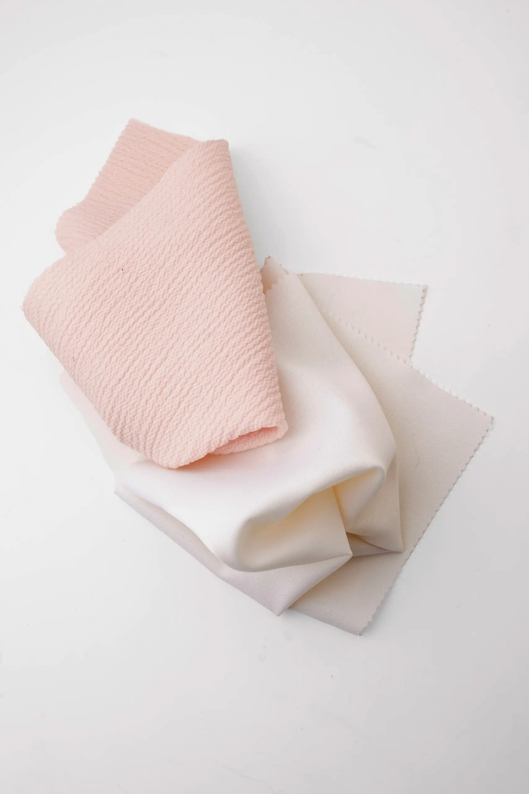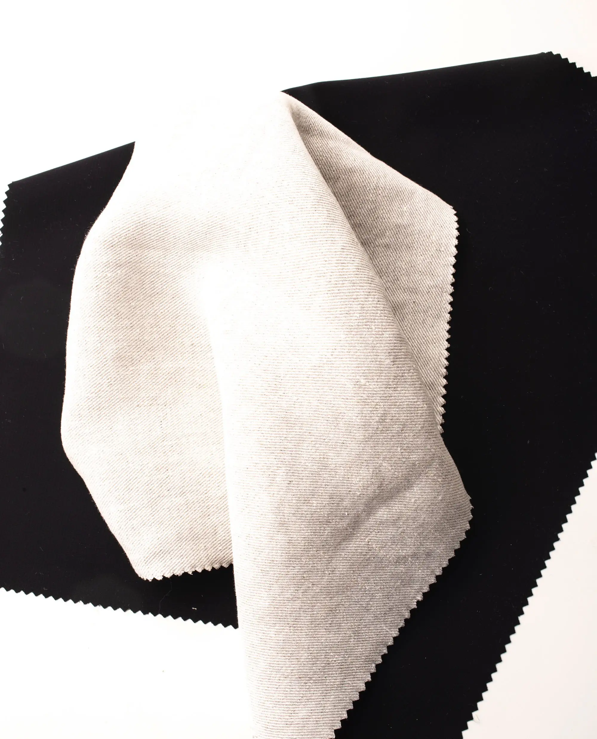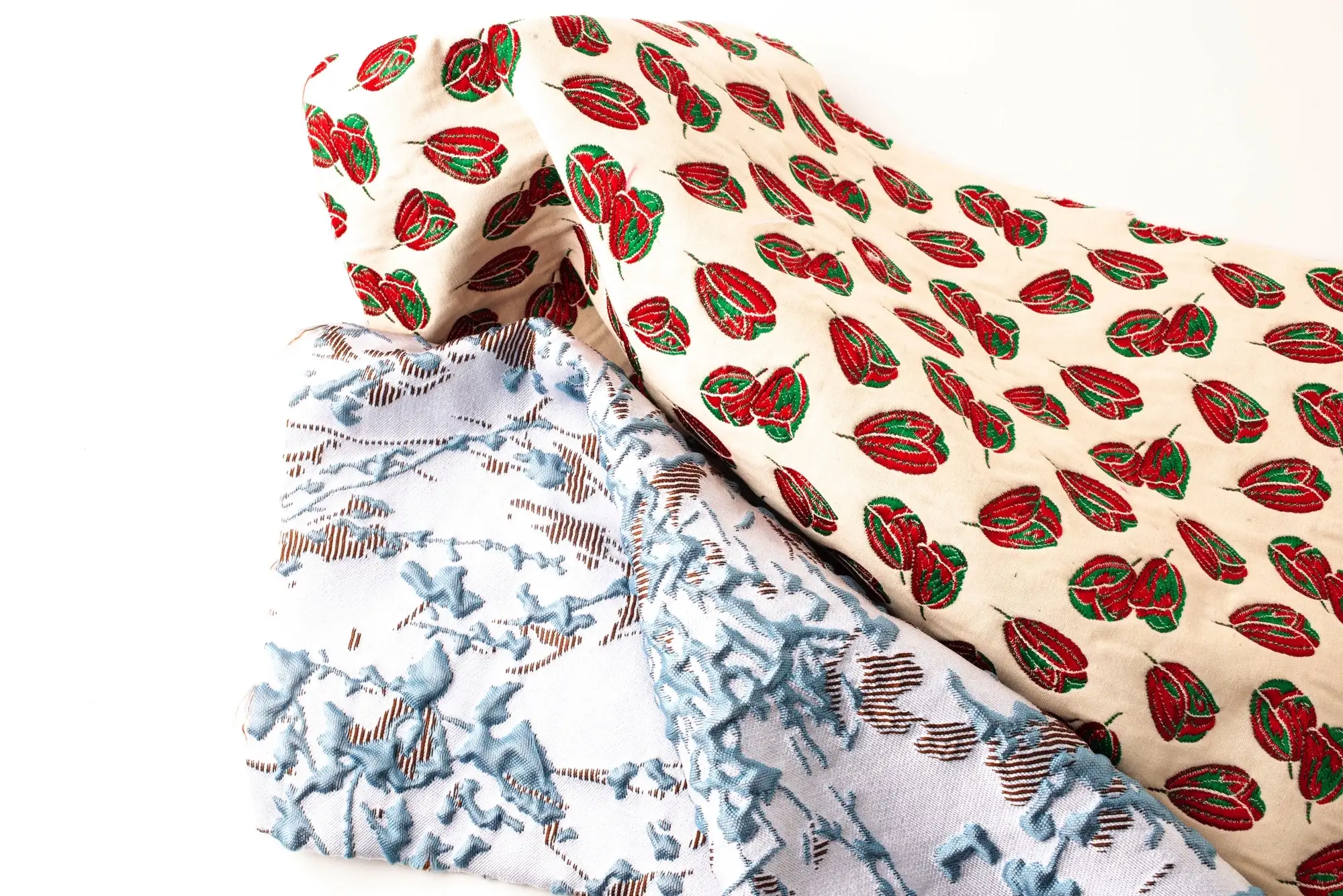 Per nutrire la curiosità e affinare l’arte della cucina, ci lasciamo guidare dalle mani esperte di uno chef stellato in una lezione a noi riservata. Si comincia dagli ingredienti, da quelle verdure adagiate sul tavolo immacolato che creano un gioco di contrasti gioiosi, simile ai vivaci jacquard di Bedini F.lli. Accanto, si posano i bottoni Gritti 1924 come piccole ciotole colme di spezie, ognuna con il proprio profumo e il proprio colore vibrante. Con dei cucchiai misuriamo le quantità necessarie, e le spezie, muovendosi leggere, richiamano le sfumature dei nastri di Nastrificio Angelo Valera. Le tele Nuova Tessilbrenta – Marzotto Group ci accompagnano nella preparazione dell’impasto: il bianco della farina si apre sullo sfondo scuro come una soffice nuvola. Su un piatto già pronto, un taco dal ripieno colorato attende solo l’ultimo tocco, rievocando le tonalità splendenti delle fantasie Eurojersey; mentre i nastri di Manifattura Modenese, disposti con cura, ricreano l’immagine di una bistecca succosa, decorata da piccoli fiori e rametti arancioni. Il lavoro sull’impasto continua, e il tavolo di legno si copre lentamente di farina: così affiorano il tweed bruno e il rigato grigio di Lanificio Campore, come trame nate dal gesto stesso del cucinare. La lana di Botto Giuseppe si tinge di bianco e di rosa, rispecchiando la dolce armonia della farina e delle uova che si uniranno alla nostra ricetta. Arriva il momento dell’impiattamento ma su un tronco d’albero levigato, che richiama le pregiate lavorazioni di Camac Industria Moda, trasformando la presentazione in un piccolo rito. E, infine, il cotone marrone di Telatex si veste di bianco, come i soffici tronchetti di marzapane ricoperti di una sottile neve di zucchero a velo: l’ultimo gesto di dolcezza che conclude questa lezione, in cui la cucina si fa arte e la materia diventa poesia.