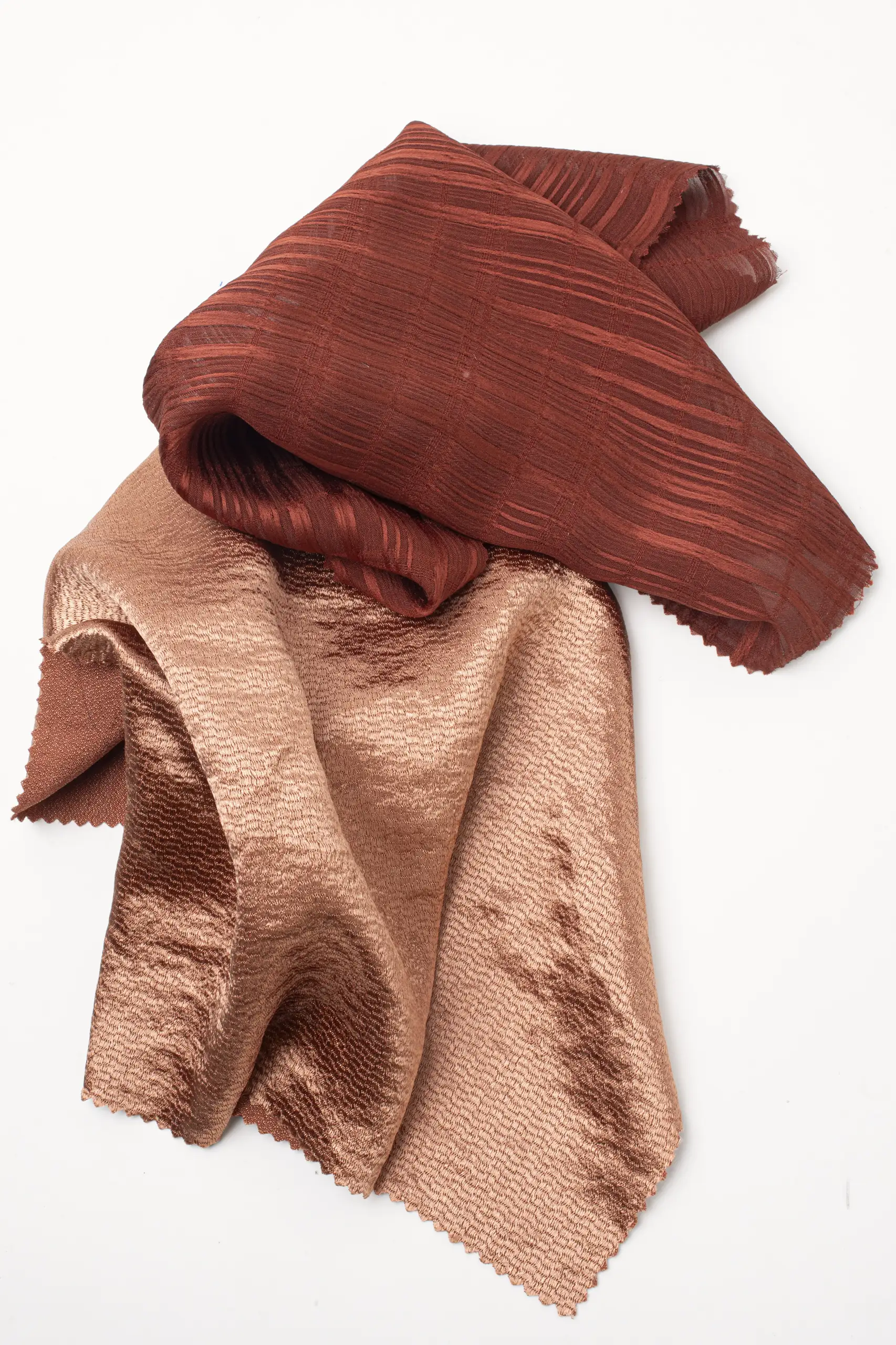 Sciolti o raccolti, lunghi o corti, i capelli diventano un linguaggio silenzioso: raccontano chi siamo, custodiscono la nostra unicità e definiscono uno stile irripetibile. Una frangia corta, che sembra ammiccare allo spirito pin-up, dialoga con un outfit casual, dando vita ad un avvolgente gioco di contrasti tra il cupro e il cotone di Tessitura Marco Pastorelli. Le nuance ramate e rossastre di Blue on Blues Fashion Fabrics, invece, sembrano catturare la luce di una chioma vibrante, mentre i ricci si adagiano delicatamente sulla camicetta, come un naturale prolungamento del tessuto. Un’acconciatura effetto bagnato apre un ventaglio cromatico che sfuma dal castano chiaro a tonalità più profonde, fino a lambire il verde: le stesse vibrazioni materiche che affiorano sulle tele di Mapel / Stelloni. I pizzi neri di Renard Grière si intrecciano evocando la potenza di una folta chioma afro, in cui ogni ciocca sembra custodire una storia. Accanto, una capigliatura nera, arricchita da ampie trecce ed extension chiare, trova un elegante rimando luminoso sugli accessori Scarpellini. Le lavorazioni di Camac Industria Moda, invece, catturano l’intensità di un audace caschetto rosso, accostato ad una maglia di paillette che vibra di luce. Un make-up blu, dal forte accento editoriale, crea un contrasto magnetico con morbide onde color miele, riflettendo le proprie tonalità sulle fibre naturali di GMF Marzotto Fabrics – Marzotto Group. Il beige e il nero si incontrano sulle lane vergini di Angelico, dando forma ad un equilibrio cromatico deciso ed elegante, che riecheggia nei ricci scuri avvolti da un ambiente caldo e accogliente. Infine, un’ulteriore, splendida chioma afro dialoga con le raffinate texture delle tele Riopele Têxteis, mentre gli accessori AyB Hislabor si dispongono con naturale armonia, rievocando un’estetica raffinata, allegra ed elegantemente minimalista.