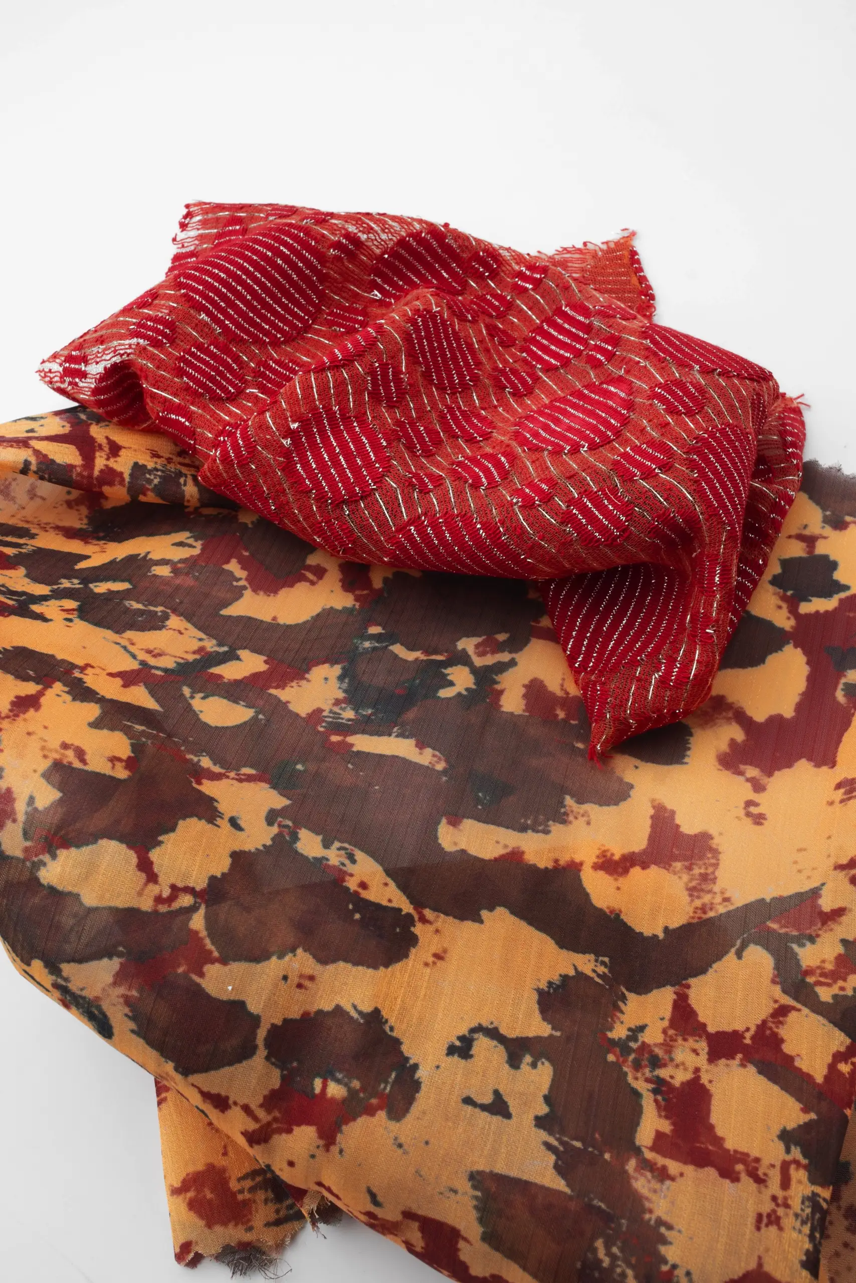 Di ritorno da un safari in Africa, lasciamo che siano le fotografie a riportarci tra quegli orizzonti sconfinati e quegli scorci indimenticabili di natura incontaminata. L’alba sfiora la steppa con una luce timida e dorata, la stessa che sembra tingere le tele di cotone Pontex Since 1972. Le fantasie beige e verdi di Sedatex si dispongono come il ricordo di un giovane leopardo che, appisolato su un albero, sembrava non voler saperne di svegliarsi. Su una costa lambita dal mare, un gruppo di pinguini invadeva la spiaggia, allegro e disordinato come una manciata di bottoni Pedrini Buttons sparsi sulla sabbia. Il verde e il beige di Brito Knitting ci riportano invece alla lunga strada che correva tra montagne silenziose, immerse nel respiro della natura. In un prato, tre ghepardi si erano riuniti, evocando le vivaci fantasie Europrint e il cotone di Destro Fabrics si tinge degli stessi verdi e marroni della savana, ferma nell’afa del sole. Più avanti, un viale di baobab giganteschi elevava i suoi tronchi verso il cielo come colonne antiche, richiamando le delicate trame tono su tono di Fasac. Quando il sole cominciava a scendere, le fantasie di Techprint ritrovavano le sfumature dei cespugli arsi dalla luce, tra cui spuntava il lungo collo di una graziosa giraffa. Poi, nel crepuscolo, un elefante avanzava lento, creando una sagoma scura contro un cielo che si colorava di giallo, come il lyocell e il cotone di Marini Industrie. Infine, mentre la notte si confondeva con gli ultimi bagliori del giorno, i pois rossi e le fantasie giallo-brune sulle tele di Colori Moda by Tintoria Butti riportano alla mente uno dei tramonti più belli: quello che resta impresso nel cuore come un richiamo lontano, quel sentimento profondo e struggente che chiamano Mal d’Africa.