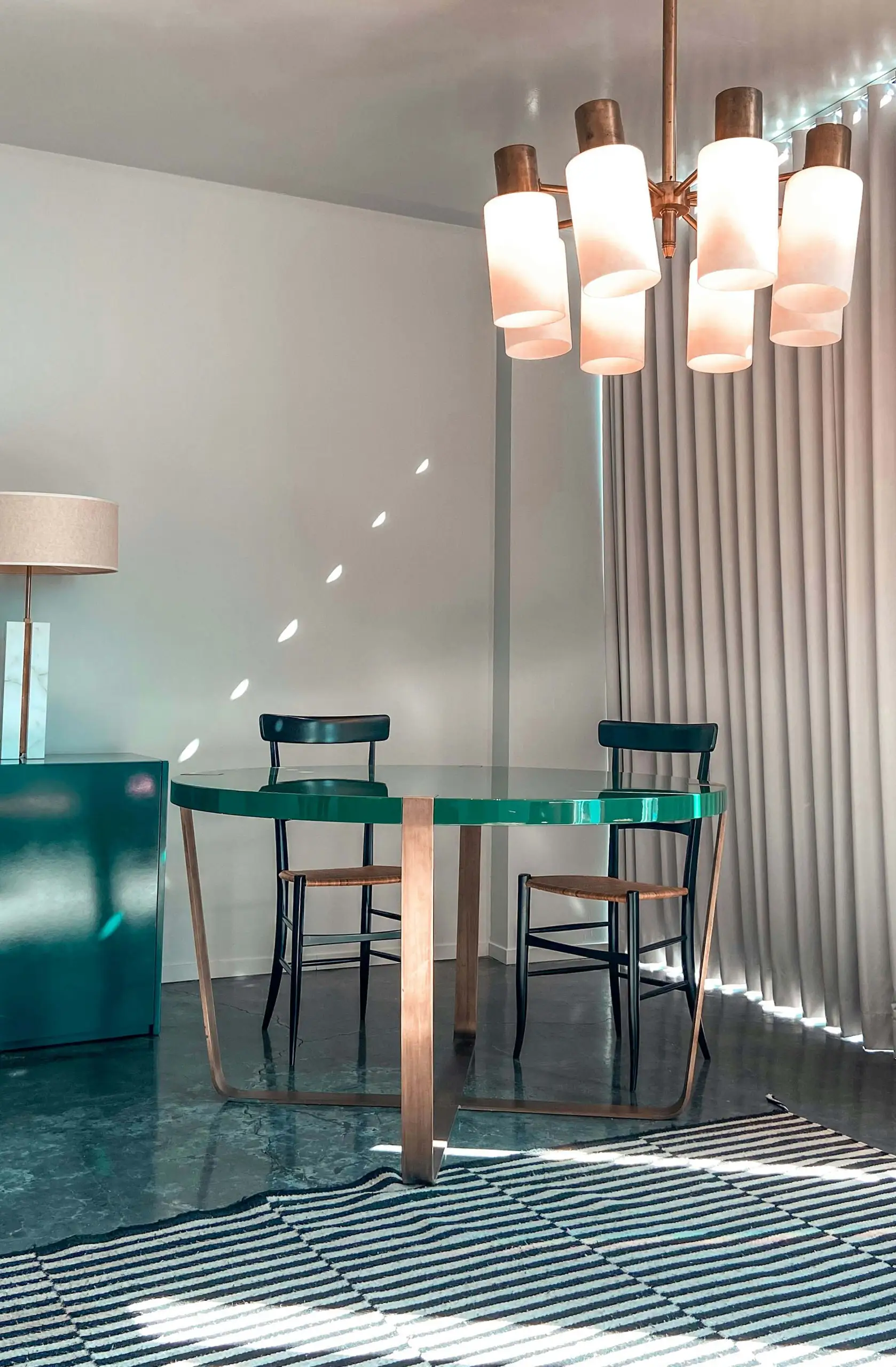 Il minimalismo moderno abbraccia dettagli dal sapore rustico, dando vita ad uno stile fresco, essenziale e sorprendentemente accogliente. I raggi del sole filtrano tra le tende di una sala da pranzo dove i colori dell’arredo si riflettono sul raso e sul twill di Lamintess, mentre gli accessori di Lartigianabottoni riprendono la delicatezza delle mensole ornate da piccole piante verdi. In un angolo, una poltrona in legno invita alla lettura con le sue linee e tonalità che dialogano armoniosamente con le creazioni di Graf & Co, amplificando il senso di equilibrio e calore. Le etichette Redmark si dispongono ricreando un’altra scena, in cui i lampadari shabby illuminano una sala dal fascino rustico. Accanto a una ringhiera, un tavolo apparecchiato accoglie quattro sedie dall’aspetto morbido e confortevole come le tele di Gruppo Tessile Imparato. Poco distante, i colori di Seride rievocano l’equilibrio cromatico tra una carta da parati verde e un pavimento aranciato in un contrasto che espira personalità e calore. Su una credenza, un vecchio stereo attende di diffondere il suo suono caldo e nostalgico, mentre le sue note sembrano colorare gli accessori di Valter con sfumature rétro. Gli jacquard Brunello si fondono in un raffinato connubio di rosa e nero, richiamando un tavolo illuminato da una lampada e incorniciato da una libreria di vinili. Sul legno grezzo di un tavolo risaltano un bicchiere e un vaso con un fiore: piccoli dettagli che evocano le texture e i contrasti cromatici degli accessori firmati Piovese Fashion. E infine, le cinture in pelle di Domar Pelletteria si intrecciano in una composizione che trasmette il calore di un salotto intimo, dove un divano e una lampada invitano al relax e alla contemplazione del nuovo, elegante spirito new shabby.