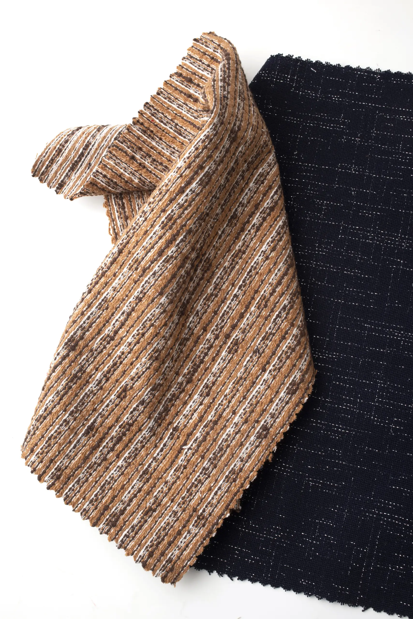 Dal tramonto alla notte, con il respiro delle onde come colonna sonora, le sere d’estate si accendono di risate, confidenze tra amici e cene romantiche sulla sabbia. Il cielo rosato e la spiaggia avvolgono l’atmosfera di due roulotte parcheggiate in riva al mare, richiamando la freschezza dei cotoni firmati Tessitura di Albizzate – T.B.M. Group, mentre le viscose lucenti di Ezio Ghiringhelli si dispongono come un picnic intimo, illuminato da candele tremolanti. Davanti a un falò, un gruppo di amici canta e suona, scaldando l’aria e riecheggiando la morbidezza dei tartan Canclini 1925 - Blue 1925. Poco più in là, il lino e il cotone di Beste si tingono di rosa e nero, riflettendo le sagome di tre ragazzi che danzano sulla spiaggia, immersi nella luce rosea del crepuscolo. Altri, intanto, arrostiscono marshmallow sulle fiamme che divorano la legna, evocando i colori caldi e le forme delle etichette Mainetti Reca. I jersey di Tessile Fiorentina Company si tingono di beige e grigio, riprendendo le tonalità di un patio in legno circondato dalla ghiaia che incornicia un altro fuoco acceso. Due innamorati si baciano sotto le ultime sfumature del cielo, mentre i pizzi Solstiss ne catturano il romanticismo. Poi, le tele di Majocchi, NT si colorano di grigi e rosa, come un paesaggio marino dove, all’orizzonte, qualcuno assapora la quiete scivolando sull’acqua su una tavola da SUP. Infine, tra il verde fitto della vegetazione, tre amici si abbandonano al silenzio della natura: le tele Dragoni ne trattengono l’essenza, mentre gli jacquard Isla riflettono un paesaggio in cui gli alberi sembrano abbracciati da un cielo punteggiato di stelle, rendendo le notti estive tra amici ancora più memorabili.